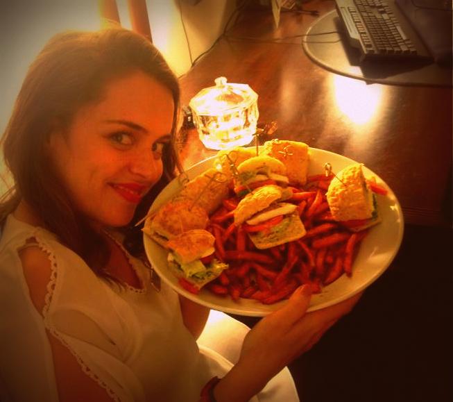 Pero el día no había acabado Casi diría que en cuestión de comida, acabábamos de empezar. Lo maravilloso de trabajar en un hotel, es la cocina La cocina, y los compañeros de cocina. Juan, mi cocinero favorito, me preparó un menú especial. Un menú que fue más un regalo que comida para mí. Para la comida, ensalada de quinoa y después, a media tarde, y por si tenía hambre… ¡¡GRACIAS JUAN!!