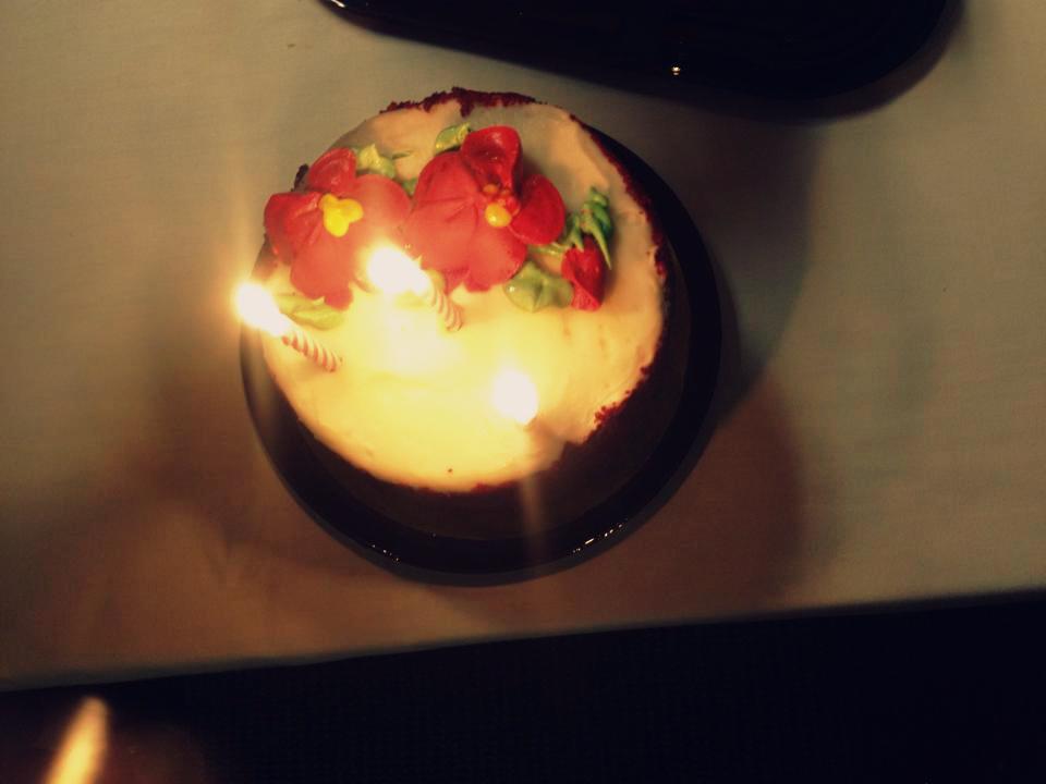Por empezar, mi cumple empezó bien temprano. A las 5:30 am Tere, mi compañera de habitación, encendió las luces de la habitación cantándome a grito «pelao» el Cumpleaños Feliz. Tras unos minutos de intentar abrir los ojos, me encuentro esta maravillosa sorpresa: