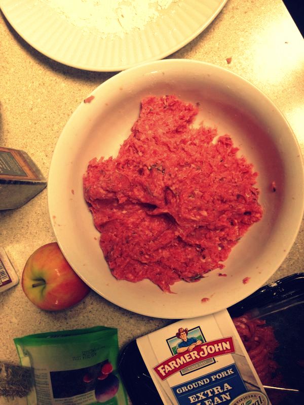 - 800 gr de carne picada (yo mezclé res y cerdo; 700 gr de la primera, 100 gr de la segunda)