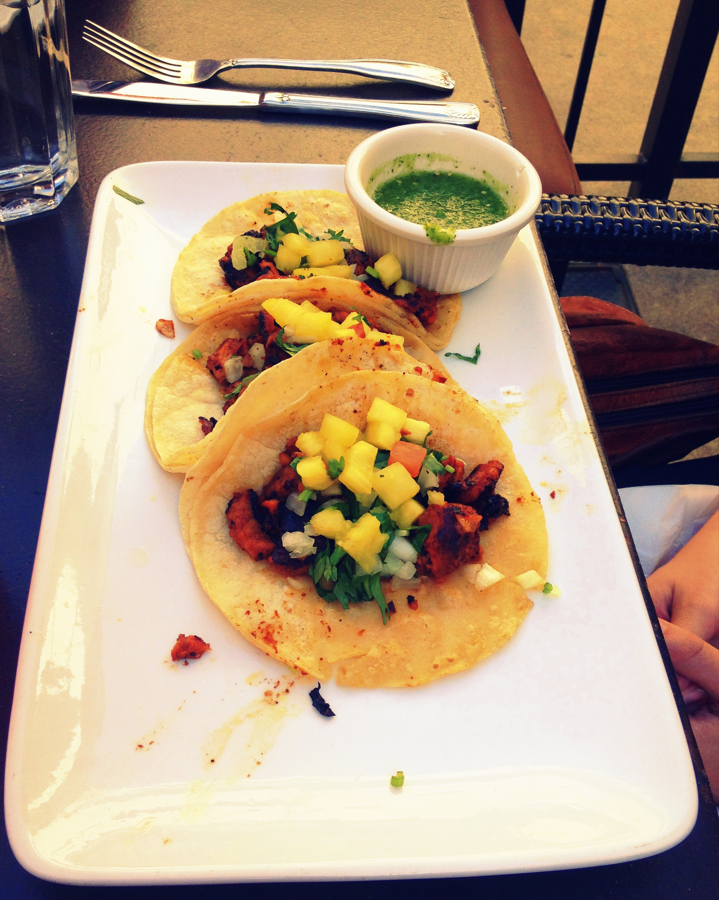 Después nos fuimos a comer, claro. Eran las dos y media de la tarde y además de comer helado y pies, no habíamos comido («comido comido»). Encontramos en la misma plaza de I like Pie un restaurante mejicano. Allí disfrutamos de fajtas, ensalada y tacos al pastor. Riquísimo.
