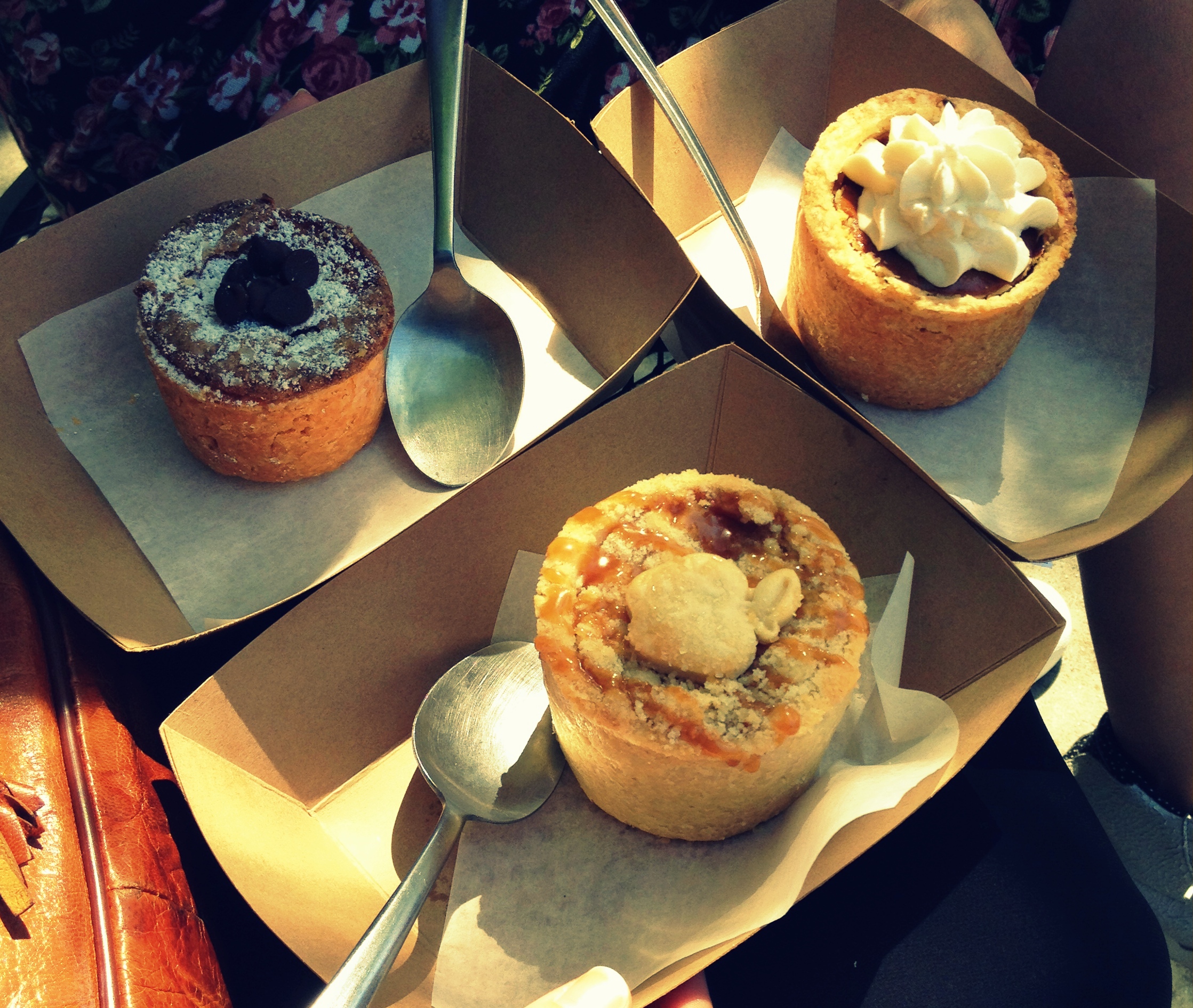 Más planes de comida. Para el sábado, Jean, Tina, Tim y yo nos fuimos a Claremont a disfrutar del Festival de Pies que allí se celebraba. Aunque llegamos un poco tarde y no pudimos ver todas las demos que queríamos o ni probar todas las pies, sí que pudimos tomar algunas en un local llamado I like Pie. Maravilloso.