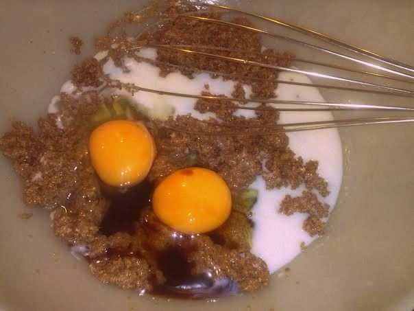 Añadir leche, huevos y vainilla_Pan marmolado de plátano y Nutella