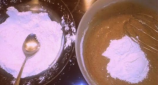 Integrar los ingredientes secos en la mezcla anterior_Pan marmolado de plátano y Nutella