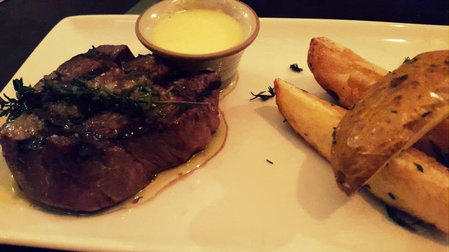 – Solomillo de ternera al carbón, salsa bearnesa y patatas fritas: