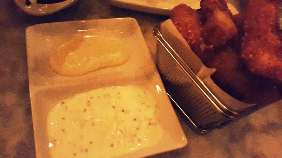 Flautas de pollo rebozadas en galleta y sésamo, con dip de hierbabuena, comino y tzaziki