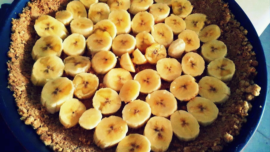 5. Extender el dulce de leche sobre los plátanos. Personalmente no puse mucha para que no fuera muy pesada, pero eso va al gusto.