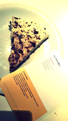 Son platos pequeños-medianos. Pero quisimos reservarnos para los postres. En un listado donde puedes pedir kriptonita, tarta de cumple, tarta del día con receta y otras lindezas… pues por primera vez en mucho tiempo, todos los de la mesa pedimos un postre.