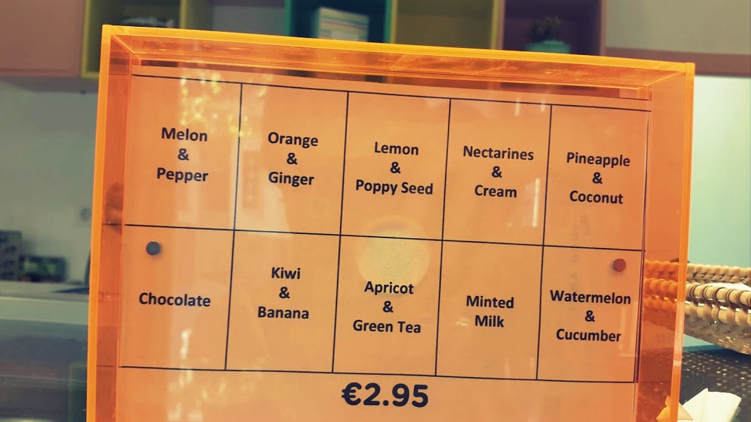 Sabores como melón con pimienta, sandía con pepino, kiwi con plátano. limón con semillas de amapola o piña con coco, entre otros, son los sabores que solo podrás encontrar en este pequeño paraíso en el centro de Madrid. ¿Difícil decisión? Haz como yo y llévate una caja a tu casa con los 6 sabores favoritos. Hay alguno esperándome en el congelador todavía, pero probé dos maravillosos: sandía y pepino (realmente maravilloso, textura ligera, sabores intensos) y el de albaricoque con té verde (muy bueno, un sabor a albaricoque muy fuerte, textura más densa).