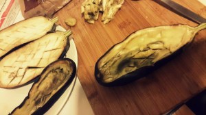 Vaciar las berenjenas con ayuda de una cuchara
