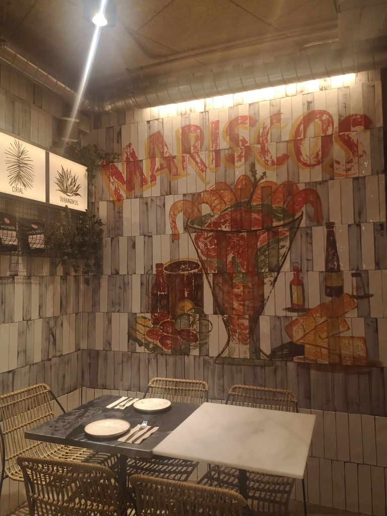 El espacio donde disfrutas de todo esto es sencillo, con pequeños detalles y murales que no se te pueden escapar. El servicio es muy amable y siempre te aconseja, tanto de cantidades como de sabores o platos originales que seguramente no conozcas.