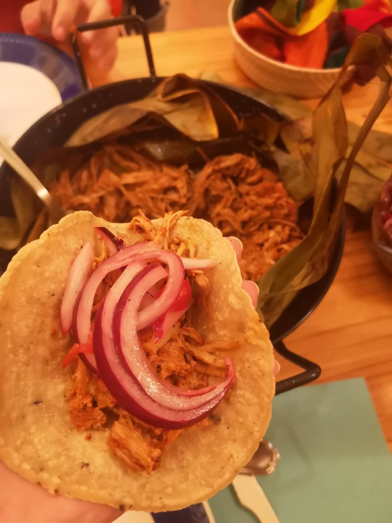 La primera vez que fui encargué cochinita pibil. Y dirás: uuuh, qué innovador todo… Guiso de cochinita pibil. Eso no lo has tomado en tu vida, Hulio. Es más, una vez lo tomas aquí, no lo pides en otro lado.
