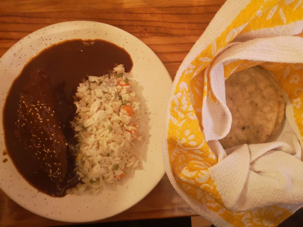 Mole rojo con con guajolote y arroz