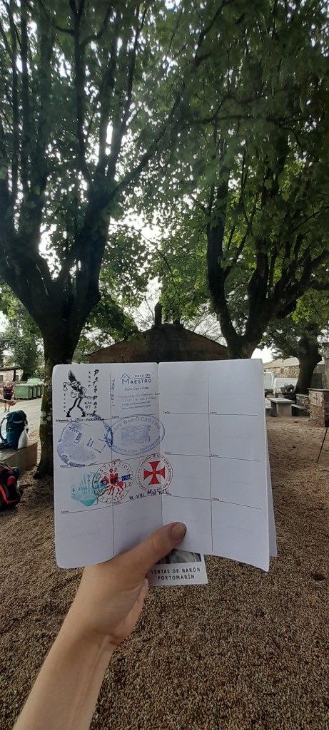 - Concheiros: los que peregrinaban a Santiago se les daban una concha de vieira como acreditación del camino. Dato añadido: palmeros, los que lo hacen a Jerusalén, y romeros, los que iban a Roma (de donde viene la palabra romería). Retomamos. En el caso de los concheiros, en origen, se les consideraba a los vendedores o vendedoras de conchas de vieira en Santiago de Compostela. Durante la Edad Media, y en siglos posteriores, había muchas personas que comercializaban las conchas de vieira para su venta a los peregrinos, especialmente en Santiago. Acabó extendiéndose este vocablo a los propios peregrinos de Santiago, ante el gran número de insignias de este tipo que adquirían en la ciudad y portaban en su atuendo. No tiene traducción al español. Y hoy en día, no sé si somos muy ansias o qué, pero ya no esperamos a Santiago para tenerla. Nosotras la compramos en Sarria, primera parada. Una forma de identificarte supongo.