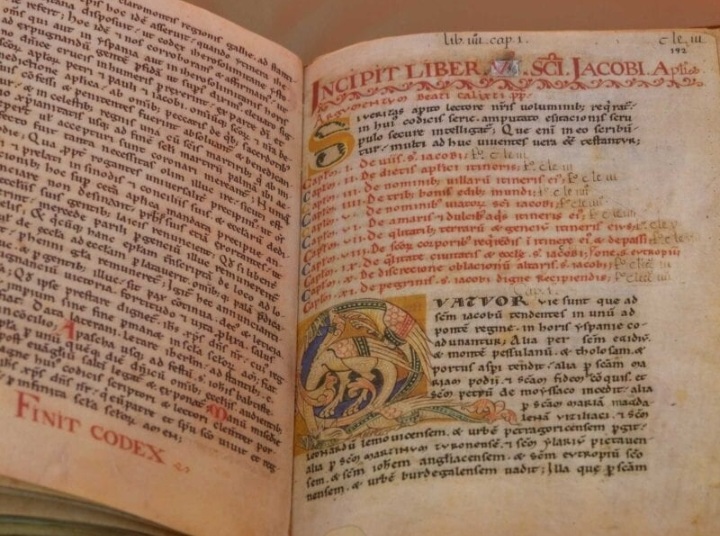 - Codex Calixtinus: escrito en el año 1139 por un clérigo francés, contiene estudios históricos del Camino de Santiago e importante documentación. Parece ser que los peregrinos demandaban información para llegar a Santiago de Compostela. Por eso nace este libro, donde se describen regiones, caminos, gentes, ríos, posibles problemas y enfermedades, explica la toponimia de los sitios por donde se pasa… Es una primera guía en toda regla. Una guía medieval. También se transmitía oralmente de peregrino a peregrino durante siglos, dado que mucha gente no sabía leer entonces.