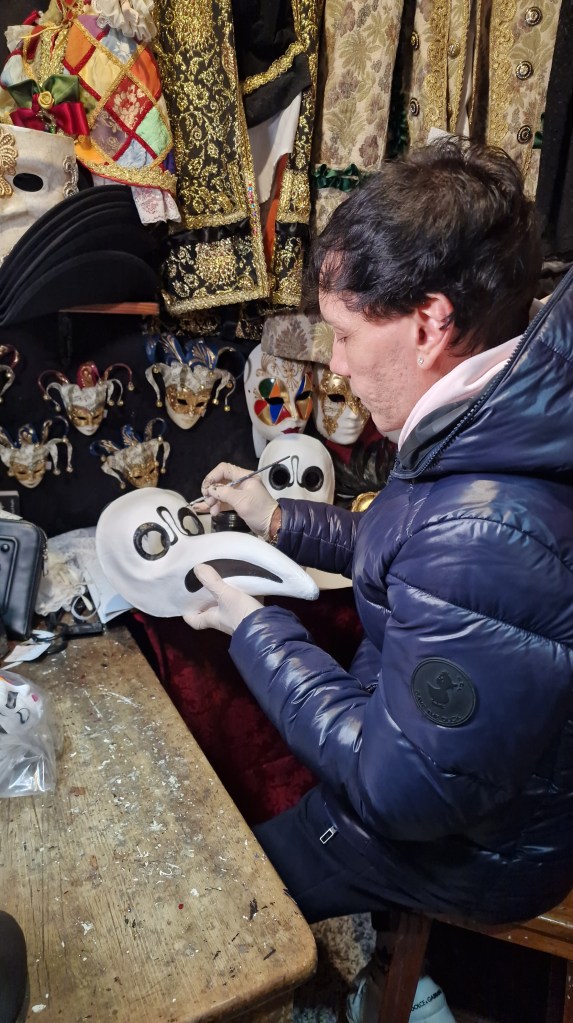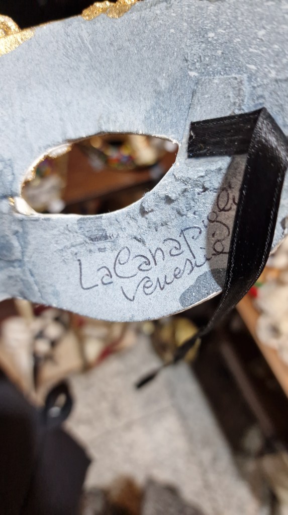 - Visitar sí o sí La Canapiglia, en el Campo S. Maurizio – San Marco 2604. Una tienda de artesanía maravillosa. Hacen máscaras para el Carnaval, tienen trajes y puedes ver trabajar a Mario, su artesano. Realmente impresionante entrar en una tienda tan pequeña con tantos «ojos» mirándote, rodearte de las más bellas máscaras… Un sueño.